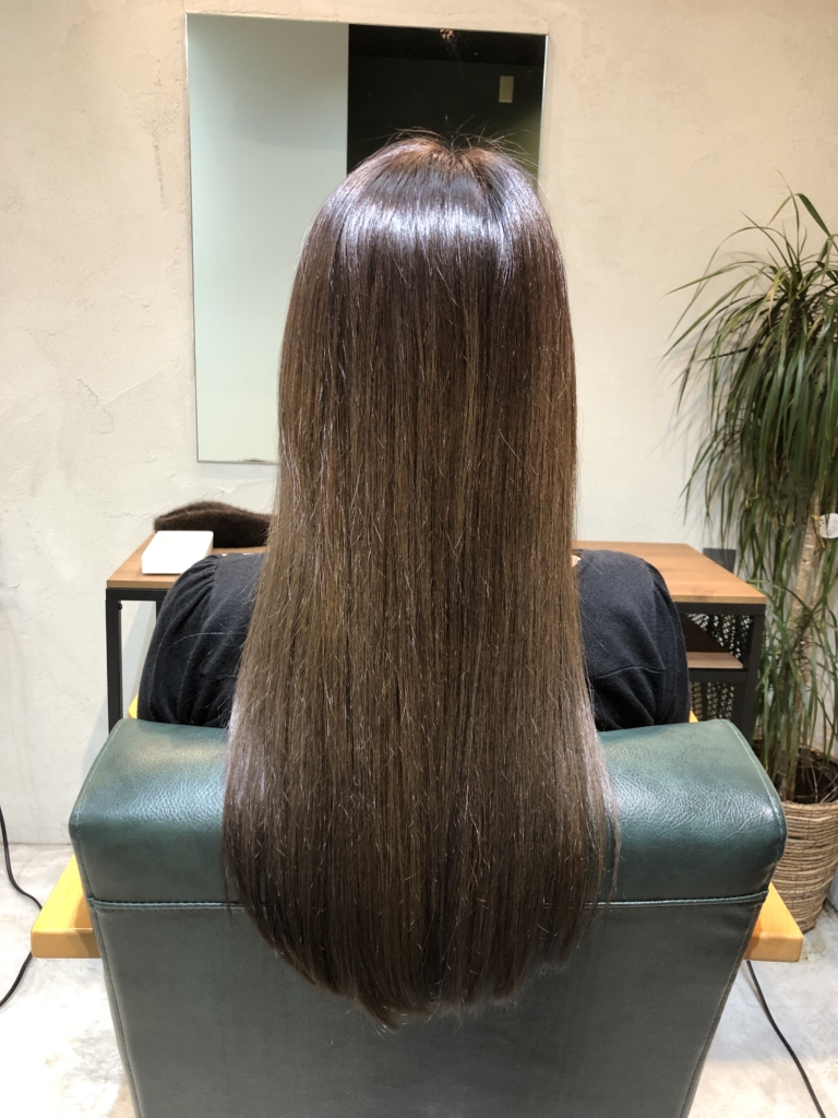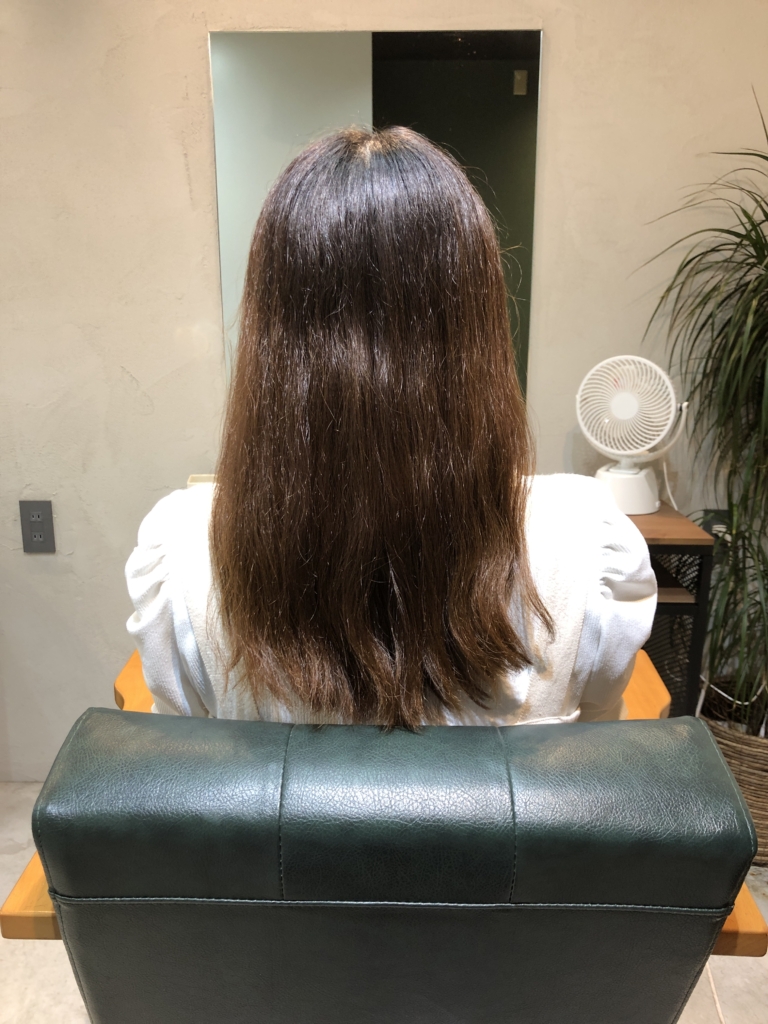 • カラー、ストレートの工程の中にトリートメントを適切に入れていく事でダメージを最小限にしている。