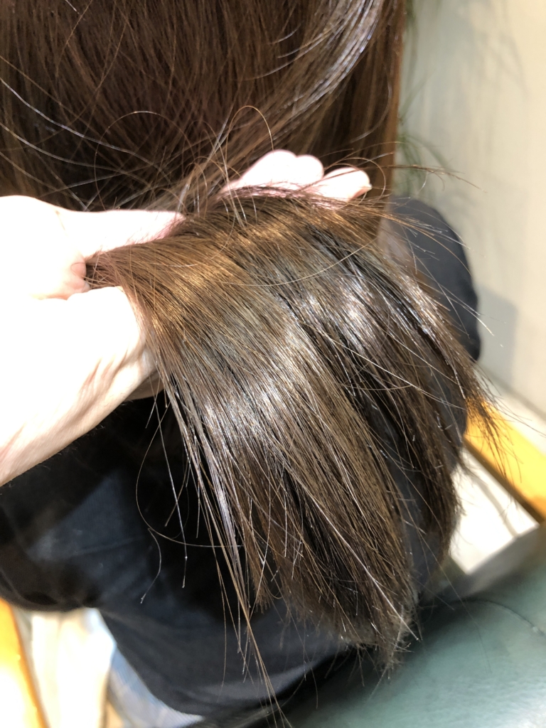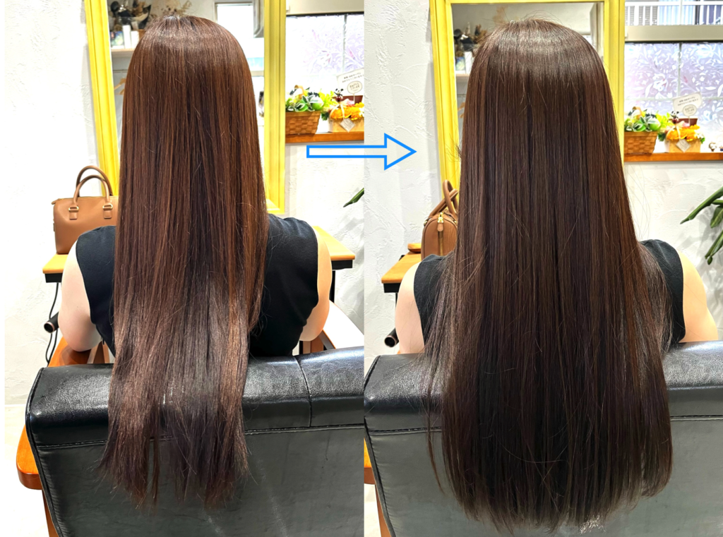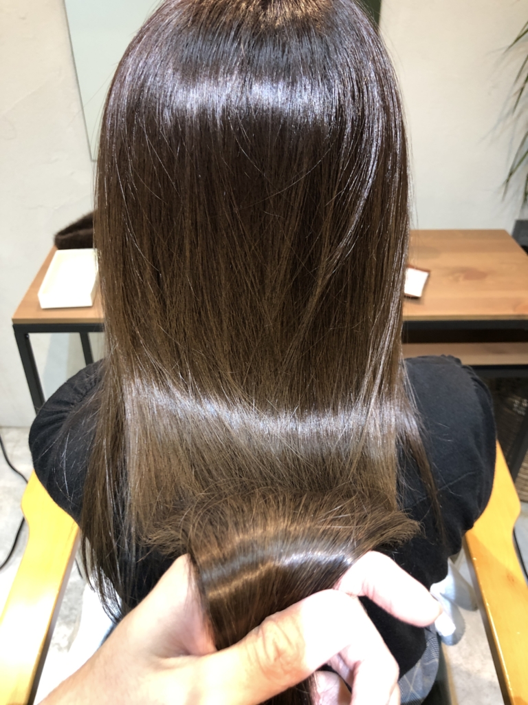 仕上がりは写真のように毛先の先まで圧倒的な艶感と手触りが実現します。
