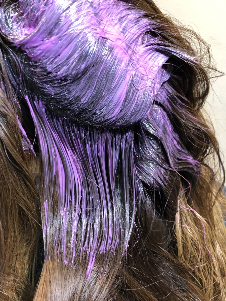 全体にカラー剤を塗り終えたら浸透・発色するお時間を頂きます。