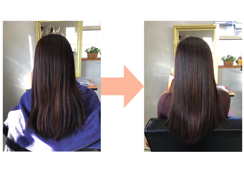 こうする事でストレート時に起こりがちな「髪が硬くなる。手触りがざらつく。ピンピンに伸びすぎる」こういった事象を防ぐことができます。